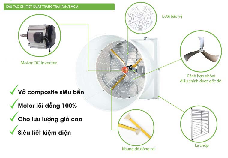 Quạt thông gió Composite SMC của Chấn Hưng sở hữu nhiều tính năng vượt trội, đảm bảo hiệu quả sử dụng và tiết kiệm chi phí lâu dài: